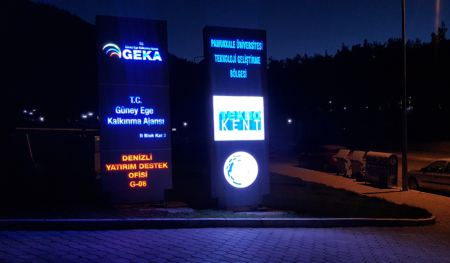 Güney Ege Kalkınma Ajansı ve Pamukkale Teknokent ortak alandaki Totem aydınlatması için şebekeden bağımsız Güneş enerjisi sistemi kullanmayı tercih etmiştir.
